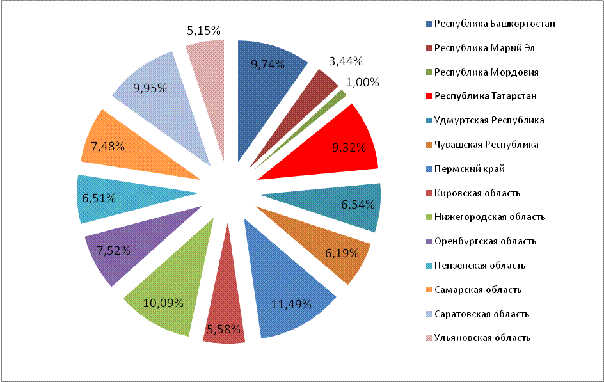 структура безработицы в Приволжском ФО по субъектам Приволжского ФО.