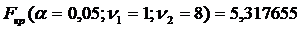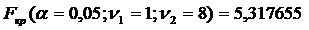 превосходит ее критическое значение 24,79541153> 5,317655, то гипотеза о