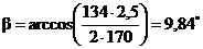 где: β - угол