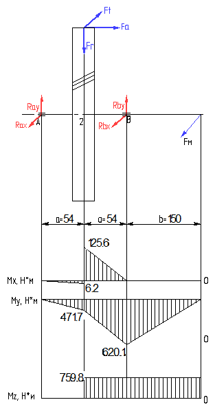 М - результирующий изгибающий момент, Н*м.