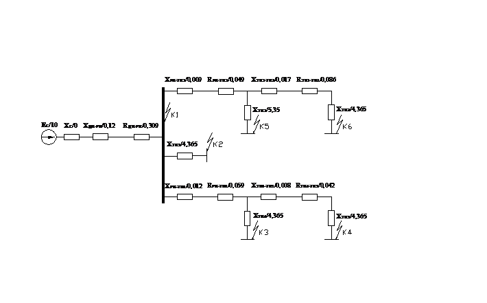 производится расчет токов короткого замыкания в сетях напряжением 10 кВ и 0,38
