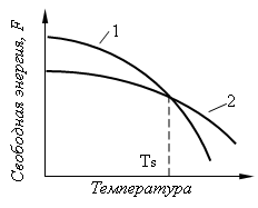Рис.1. Изменение свободной энергии жидкого (1) и