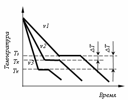 Рис. 2 Кривые охлаждения при кристаллизации