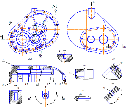 подшипников, ведомого и ведущего вала и т.д. Внешние контуры детали плавные,
