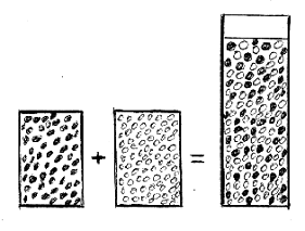 шарика, смешивание гороха и пшена, воды и спирта, изменение объема стального шарика