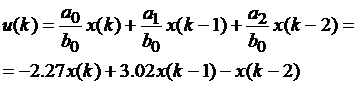 алгоритма управления_k = p1*u_k1 + q0*e_k + q1*e_k_1 + q2*e_k2;