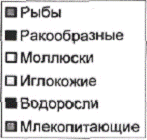 многочисленные популяции донных беспозвоночных, рыб, морских птиц и
