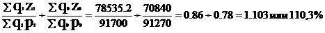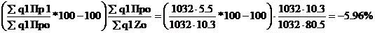 - ∑q1ƶ0 = 78535,2 - 83076 = -4540,8 тыс. руб.: