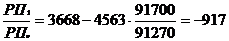 ∆О = О1 - Оо = 3668 -4563 = -895 тыс.руб.