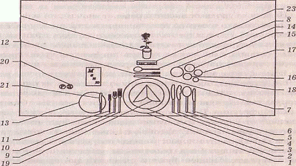водочная; 19 - салфетка; 20 - специи; 21 - нож для масла; 22 - ваза