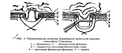 грыжевого отверстия. Содержимое грыжи вправляют в брюшную полость и сдавливают