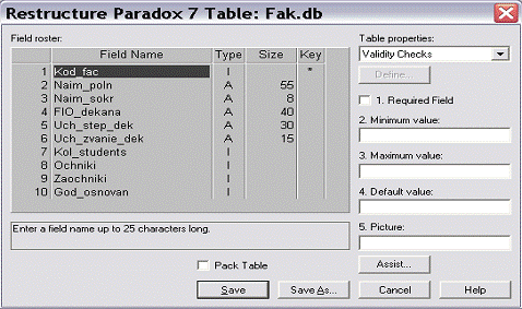 Change- осуществляет фильтрацию Таблицы2 (“Fak. db ”) по полю Год основания факультета (начиная с максимального