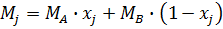 Затем пересчитаем мольные доли легколетучего компонента в исходной смеси,