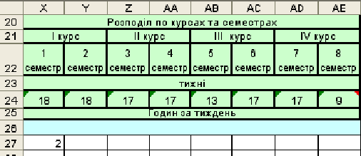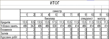 семестрам, а также к общему количеству по курсу.