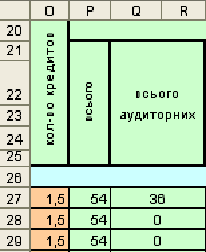 кредитов, то ячейка на пересечении «Вместе за первый семестр» и «Общее