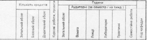 название дисциплины, объем кредитов, контроль, количество отведенных часов на