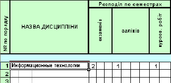 и курсовых работ в соответствующую ячейку необходимо ввести номер семестра, в