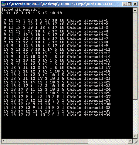then:=M[i]; [I]:=M[J]; [J]:=W;:=I+1;:=J-1;L := 1 to Count do WriteC ' ,M[L] ); ( 'Число итераций=' ,A);