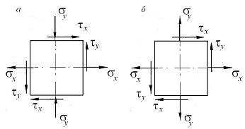 нормальных и касательных напряжений, показанных на рис. 1, а. Положительные