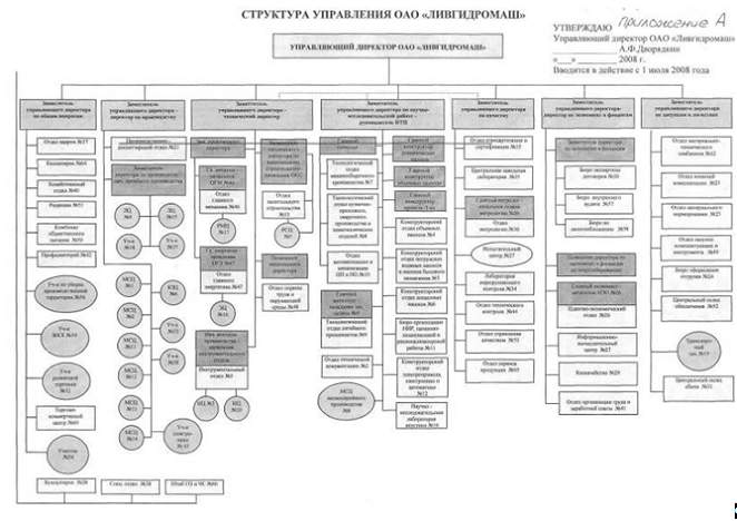 ОАО «Ливгидромаш» для выполнения целей и миссии предприятия используется общая