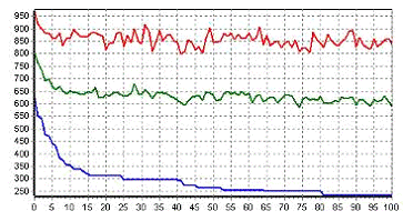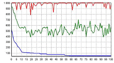 к минимуму за одно поколение (на протяжении всей работы алгоритма);