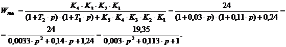 . Уравнение регулируемого объекта (1 + T1p) t2 = k1t1p