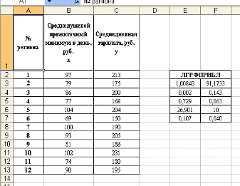 то отвергаем гипотезу о незначимости коэффициентов уравнения