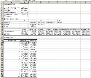 показательной парной регрессии. Проверить результаты с помощью ППП Excel. Оценить статистическую