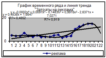 Рис.10. Результат построения тренда и прогнозирования по тренду