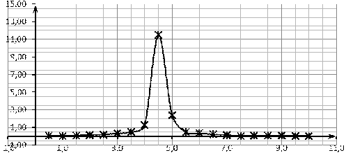 отмечается хорошо выраженный пик высотой около 11,5 ед.