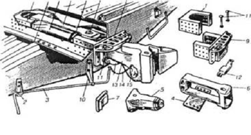 Нижняя часть рамки соединяется штырями с буферами, а верхняя с хомутом листовой
