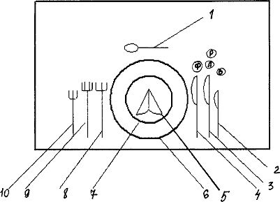 6-севировочная тарелка 7-закусочная тарелка 8-вилка столовая 9-вилка рыбная