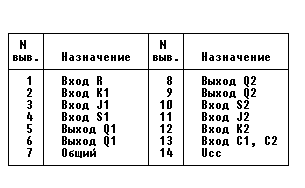 триггера с установкой в 0 и 1 (выводы R и S). Считывание информации со входов J и K происходит во время положительного перепада на входе С, а на