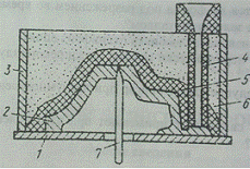 термопарой 7. При температуре около 0°С модельную плиту 1 вместе с моделью 2 и