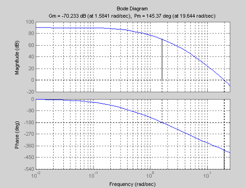Построим ЛАЧХ и ЛФЧХ системы в программе Matlab, для этого воспользуемся функцией: