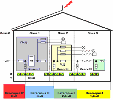 взаимосвязь между зонами молниезащиты, классами защитных устройств и
