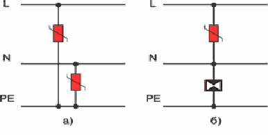 Существуют две основных схемы включения УЗИП в электропитающую линию (рис. 5).