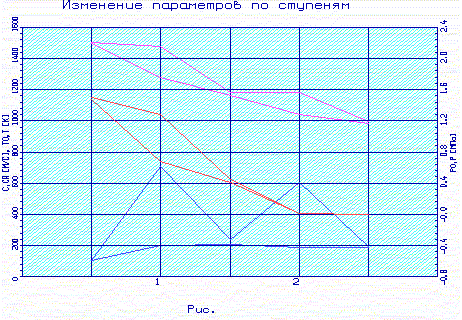 ) Распределение основных параметров по проточной части двигателя.