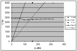 резонансные режимы работы лопатки лежат вне зоны рабочих режимов работы