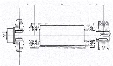 получает вращение от электродвигателя через клиноременную передачу и шкивы (см.