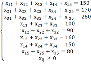 80 ед. товара в B5; из A2 отвезти 30 ед. товара в B1, 90 ед. товара в B2 и 50 ед. товара в В4; из A3 отвезти 160 ед. товара в B3 и 100 ед. товара в B4. При этом суммарная стоимость