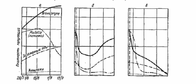 естественных врагов; в - обработка, при которой помимо тлей снижается численность