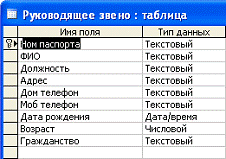 Были разработаны таблицы. Тип данных каждого поля соответствует смыслу этого