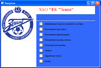 Для ЗАО футбольного клуба «Зенит» потребуется кнопочная форма для быстрой