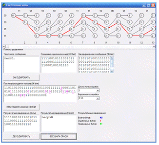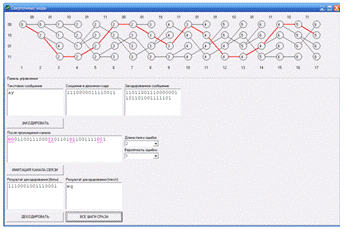 кодирования/декодирования текстовых сообщений сверхточным кодом и имитацию