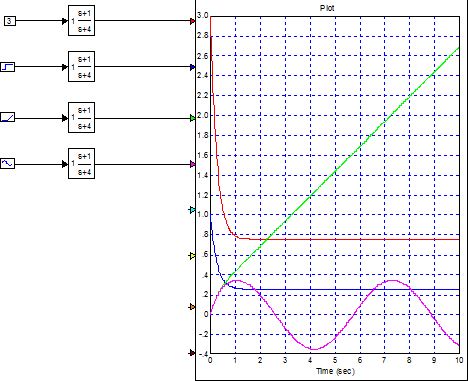 программы получить график переходного процесса каждого звена и всей системы в