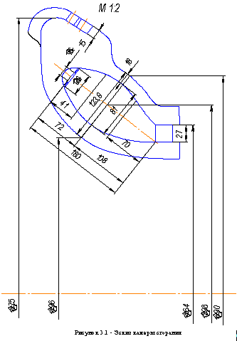 калькуляторе и по полученным размерам построен эскиз камеры сгорания. Так же