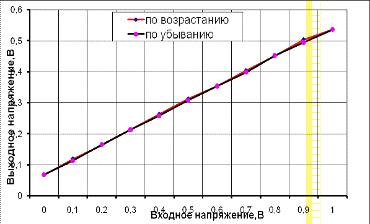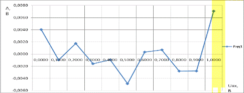 Максимальная невязка составляет 0,0071 В в точке измерения 1,0 В.