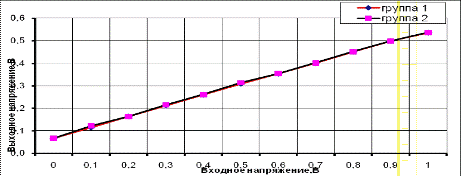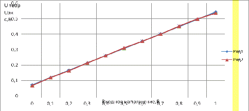 теоретической СХП от входного значения напряжения аппроксимируется следующей