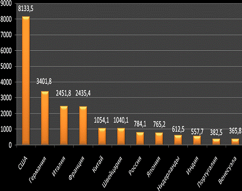 На сегодня наибольшим золотым запасом обладают США - 8,1 тыс. т, Германия